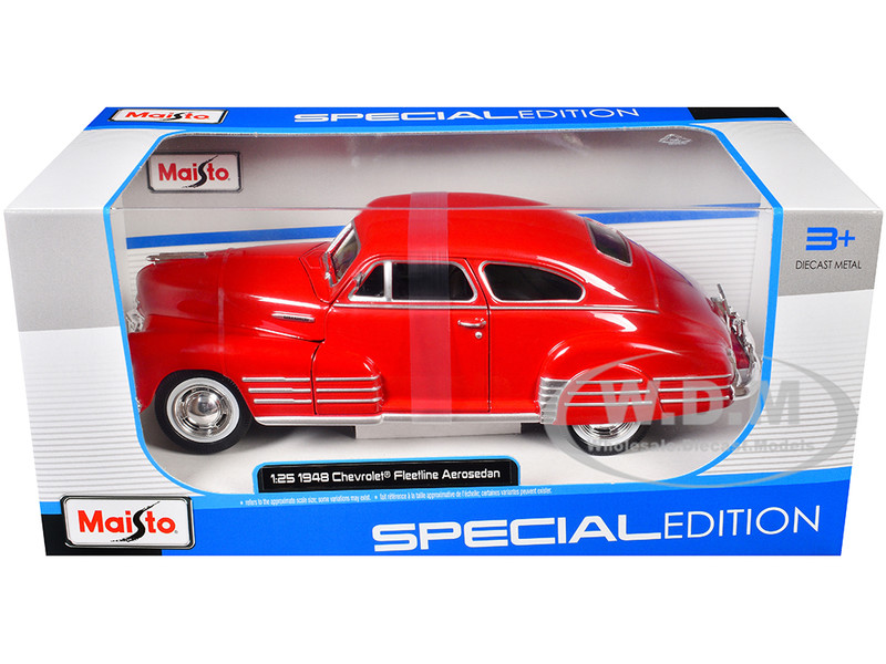 - Brand new 1/25 scale diecast car model of 1948 Chevrolet Fleetline Aerosedan Red "Special Edition" Series die cast model car by Maisto.