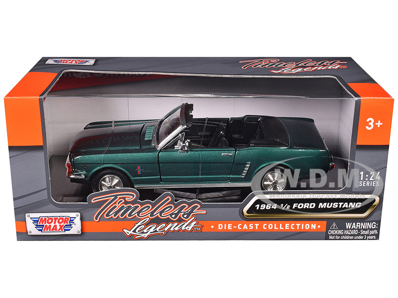 - Brand new 1/24 scale diecast car model of 1964 1/2 Ford Mustang Convertible Green Metallic die cast model car by Motormax.