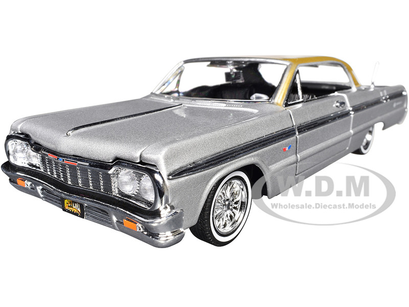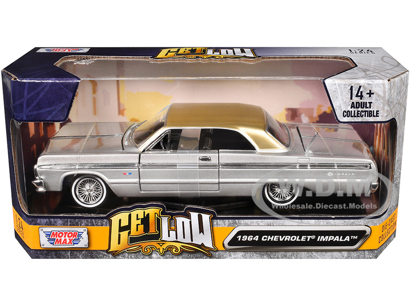 - Brand new 1/24 scale diecast car model of 1964 Chevrolet Impala Lowrider Hard Top Silver Metallic with Gold Metallic Top "Get Low" Series die cast model car by Motormax.