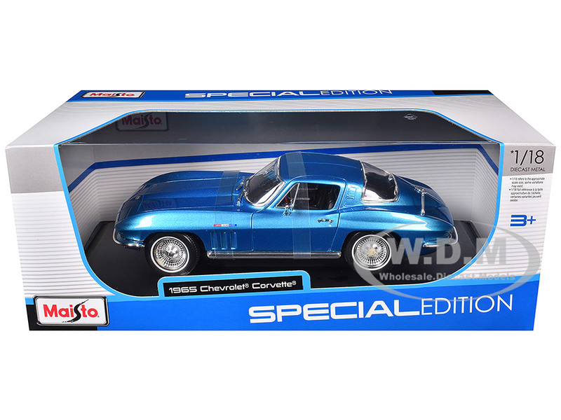 - Brand new 1/18 scale diecast car model of 1965 Chevrolet Corvette Blue Metallic die cast model car by Maisto.