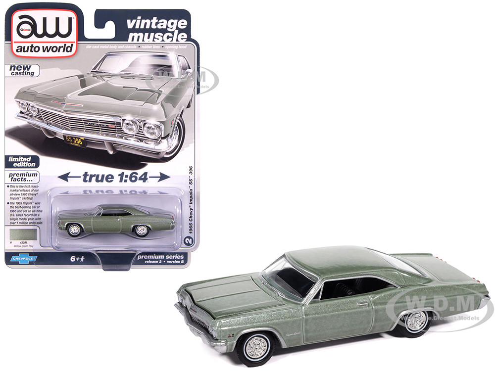 - Brand new 1/64 scale diecast car model of 1965 Chevrolet Impala SS 396 Willow Green Metallic "Vintage Muscle" Series die cast model car by Auto World.