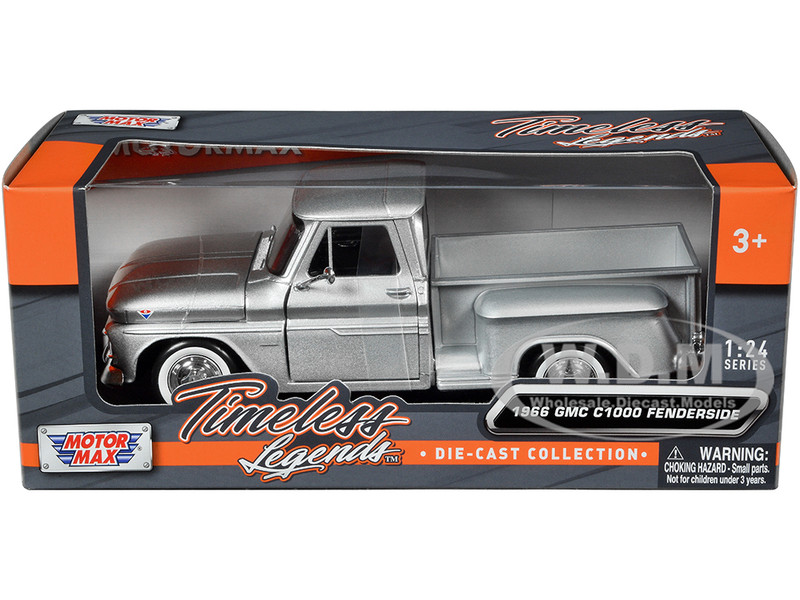 - Brand new 1/24 scale diecast car model 1966 GMC C1000 Fenderside Pickup Truck Silver Metallic "Timeless Legends" Series die cast model car by Motormax.