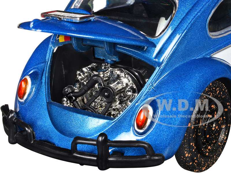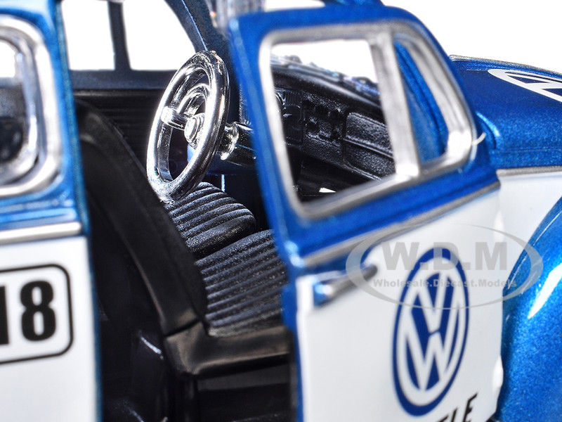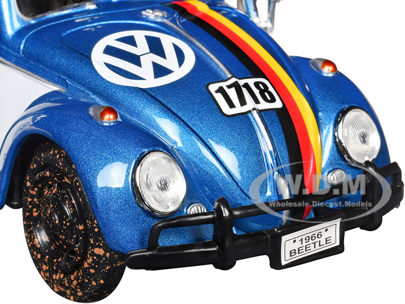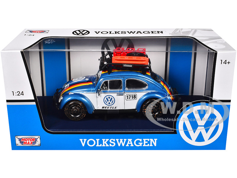 - Brand new 1/24 scale diecast car model of 1966 Volkswagen Beetle Off Road #1718 Blue Metallic and White with German Flag Stripes and Roof Rack Accessories die cast model car by Motormax.