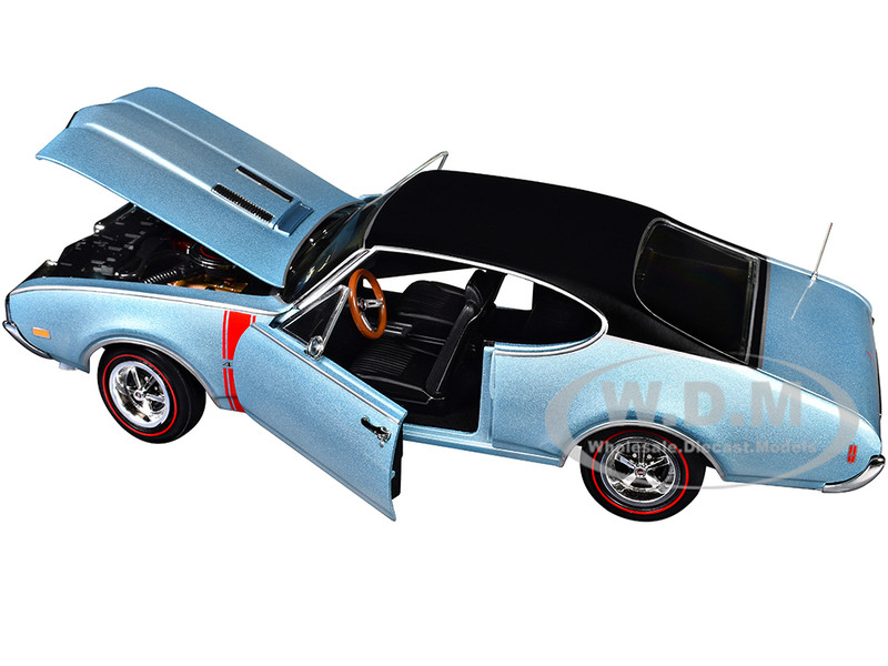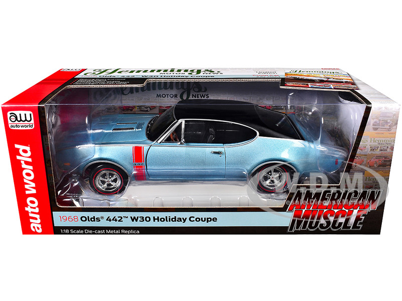 - Brand new 1/18 scale diecast car model of 1968 Oldsmobile 442 W30 Holiday Coupe Teal Frost Metallic with Red Stripes and Black Vinyl Top "Hemmings Motor News July 2023 Cover Car" "American Muscle" Series die cast model car by Auto World.