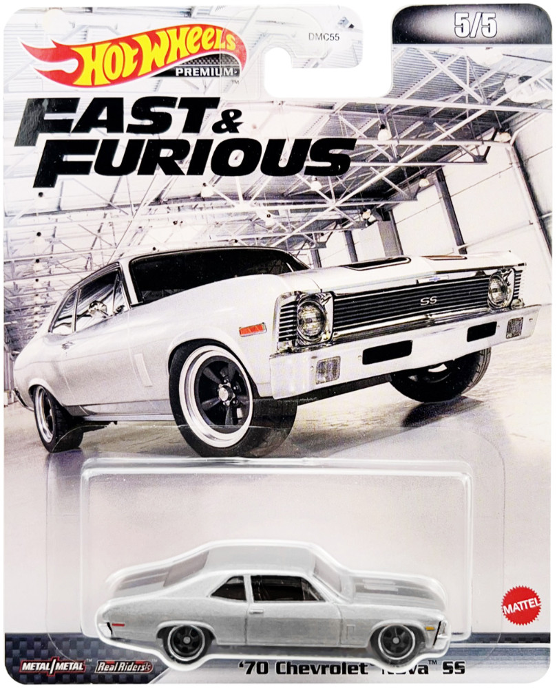- Brand new diecast car model of 1970 Chevrolet Nova SS Silver Metallic with Black Stripes "Fast & Furious" Series die cast model car by Hot Wheels.