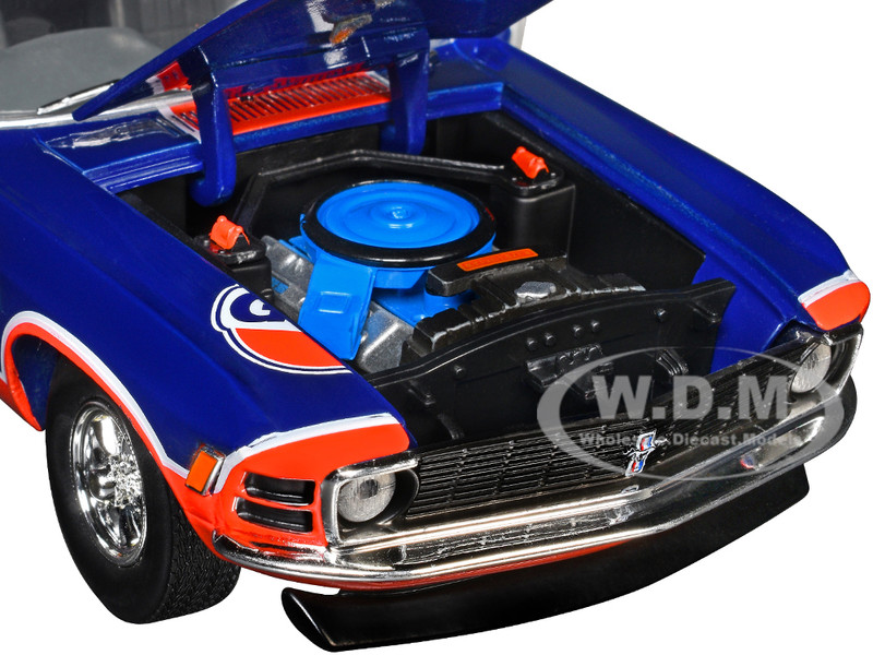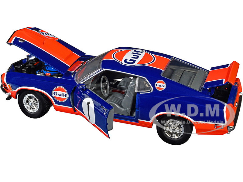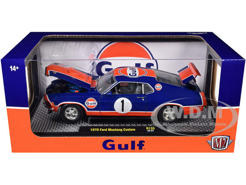 - Brand new 1/24 scale diecast car model of 1970 Ford Mustang Custom #1 "Gulf Oil" Dark Blue with Orange Graphics Limited Edition to 7850 pieces Worldwide die cast model car by M2 Machines.