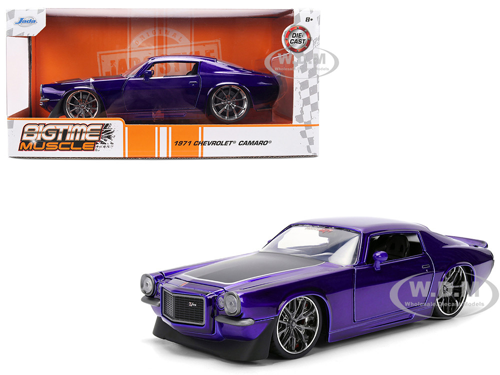 - Brand new 1/24 scale diecast car model of 1971 Chevrolet Camaro Z/28 Purple Metallic with Black Hood "Bigtime Muscle" Series die cast model car by Jada.