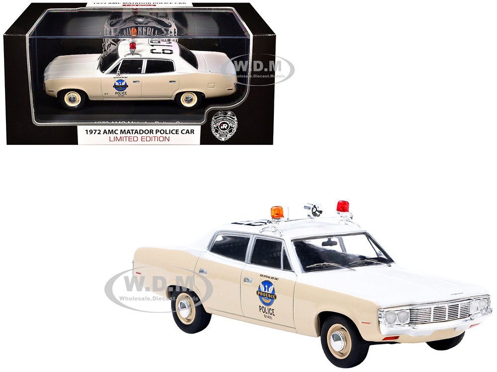 - Brand new 1/43 scale diecast model of 1972 AMC Matador Police Car "Phoenix Police Department" White and Beige die cast model by Iconic Replicas.