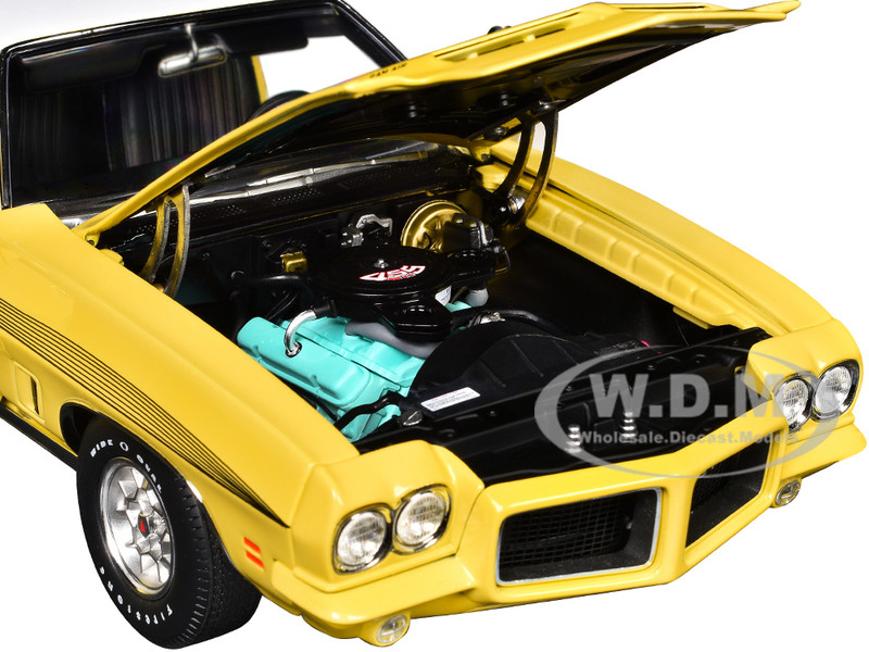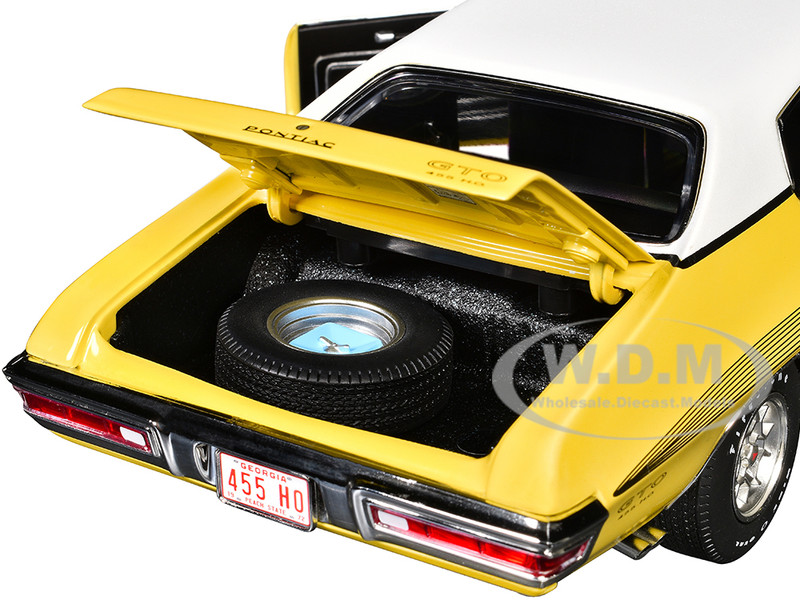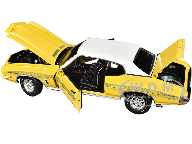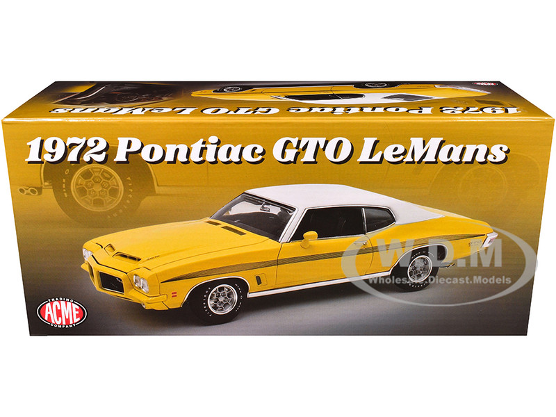 - Brand new 1/18 scale diecast car model of 1972 Pontiac GTO LeMans Monarch Yellow with GTO Stripes and White Vinyl Top Limited Edition to 264 pieces Worldwide die cast model car by ACME.
