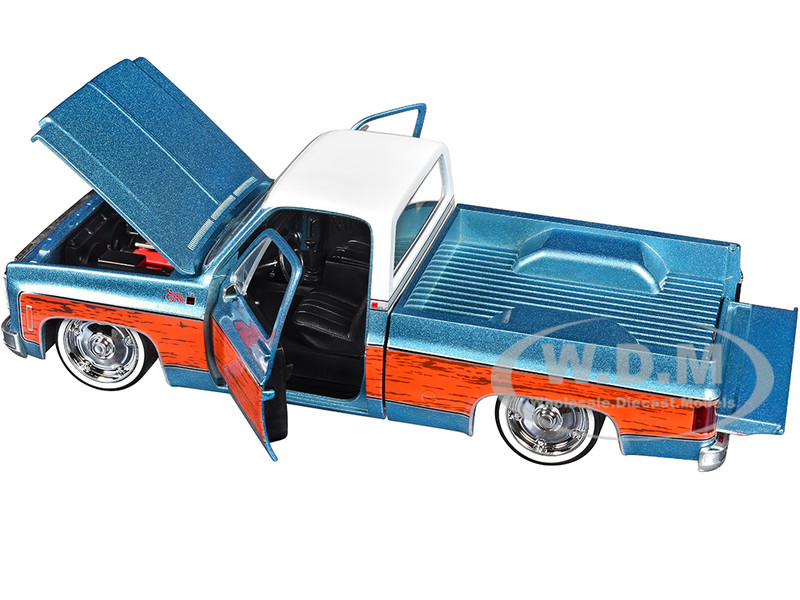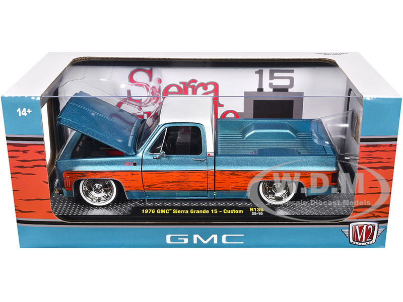 - Brand new 1/24 scale diecast car model of 1976 GMC Sierra Grande 15 Pickup Truck Blue Metallic with White Top and Woodgrain Sides Limited Edition to 7050 pieces Worldwide die cast model car by M2 Machines.