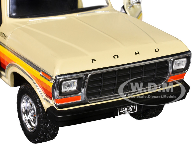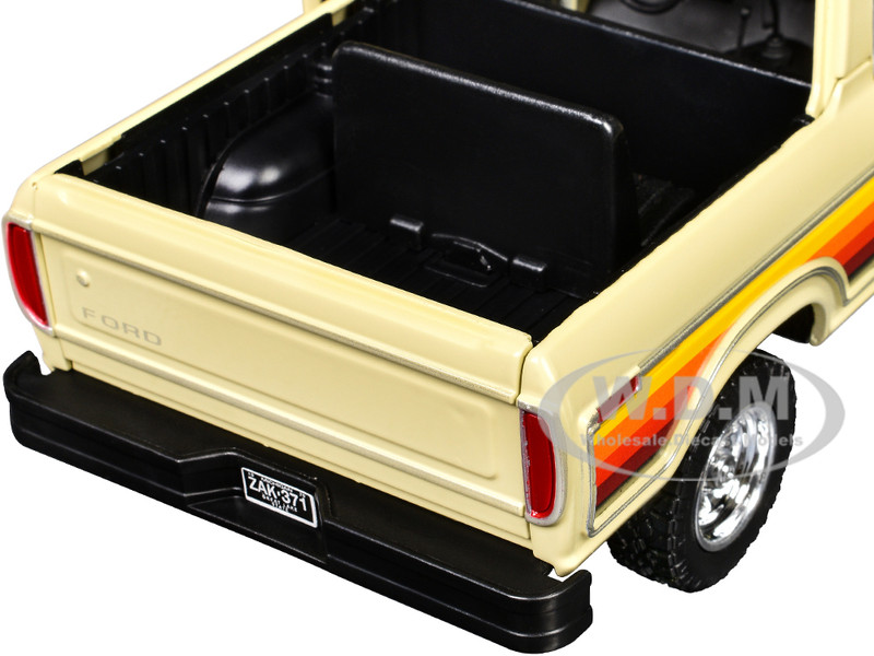 - 1978 Ford Bronco Custom Cream with Stripes and Black Top "Platinum Collection" Series 1/24 Diecast Model Car by Motormax
