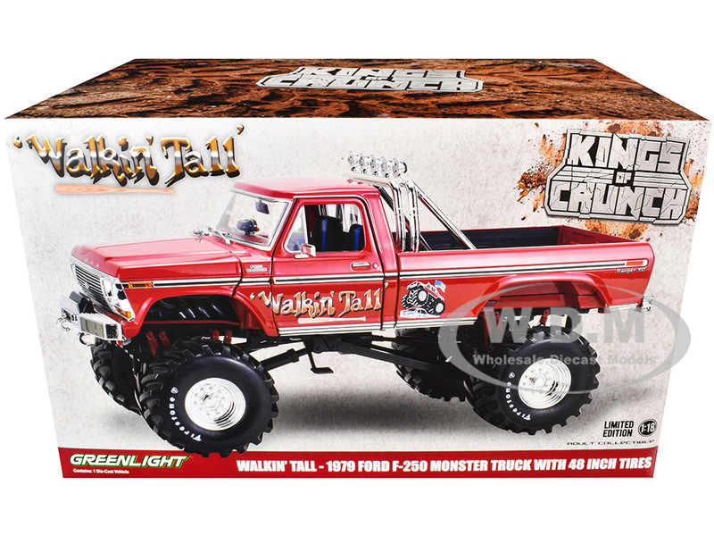- Brand new 1/18 scale diecast car model of 1979 Ford F-250 Monster Truck with 48-Inch Tires "Walkin' Tall" Red "Kings of Crunch" Series die cast model car by Greenlight.
