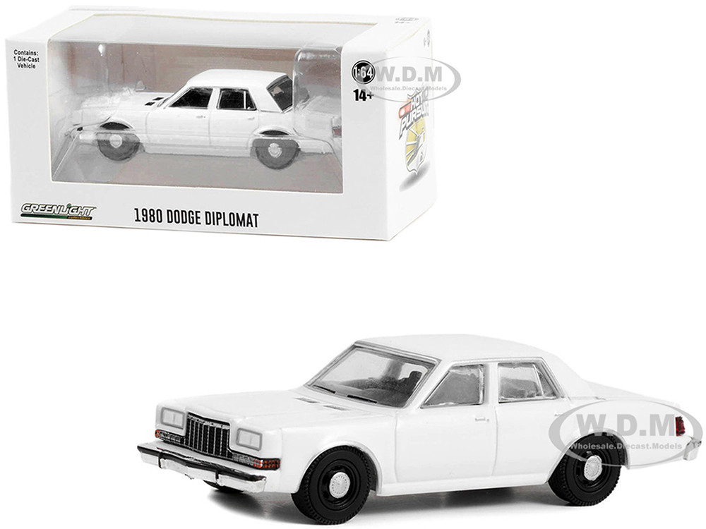 - Brand new 1/64 scale diecast car model of 1980-1989 Dodge Diplomat Police Unmarked White "Hot Pursuit" "Hobby Exclusive" Series die cast model car by Greenlight.