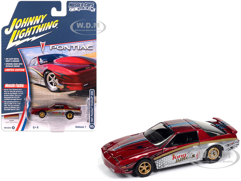 - Brand new 1/64 scale diecast car model of 1987 Pontiac Firebird GTA "King of the Jungle" Red and Silver Metallic with Graphics "Muscle Cars USA" Series die cast model car by Johnny Lightning.