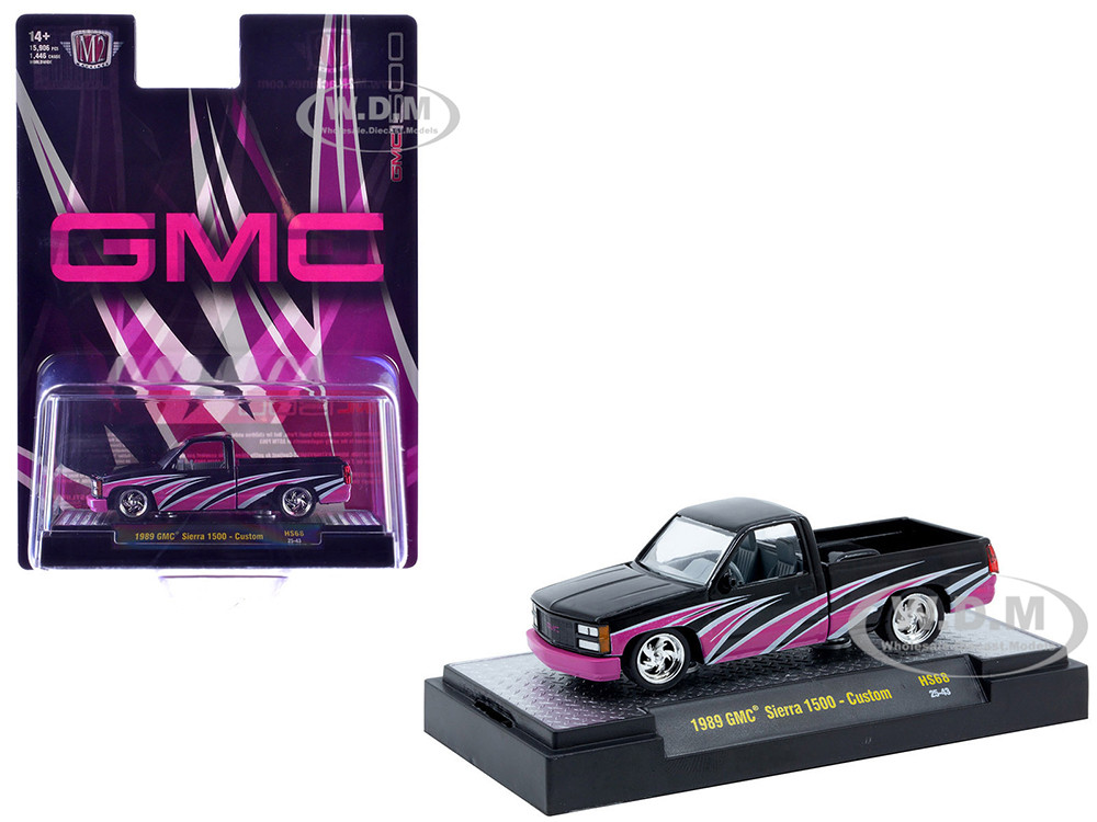 - Brand new 1/64 scale diecast car model of 1989 GMC Sierra 1500 Custom Pickup Truck Black with Pink and White Graphics Limited Edition to 15906 pieces Worldwide die cast model car by M2 Machines.