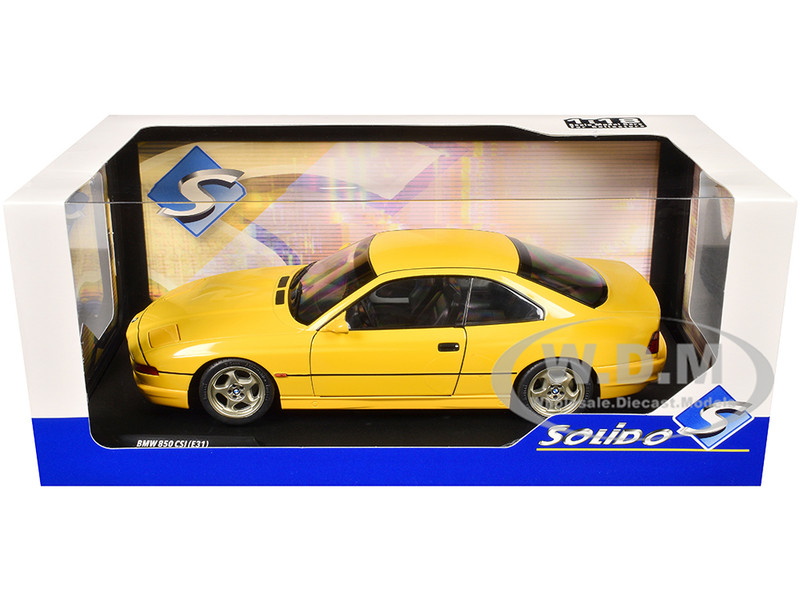 - Brand new 1/18 scale diecast car model of 1990 BMW 850 (E31) CSI Dakar Yellow die cast model car by Solido.