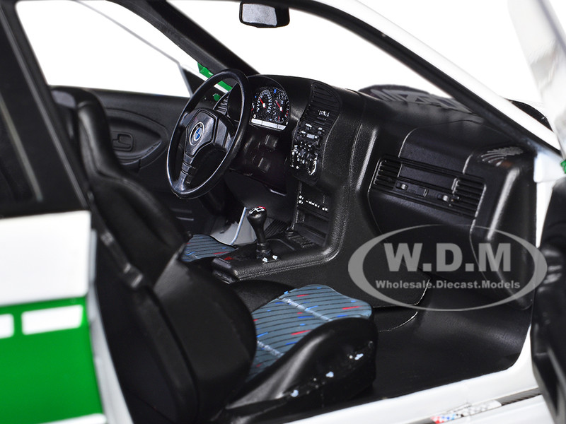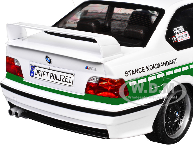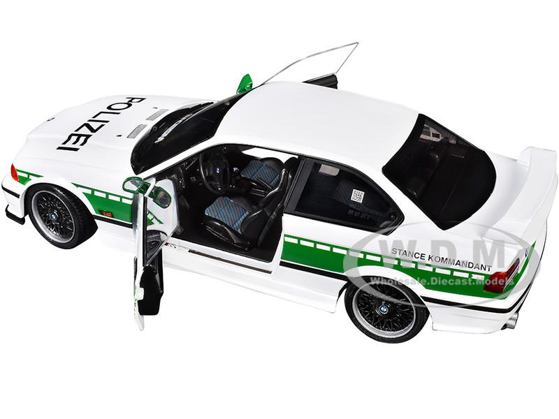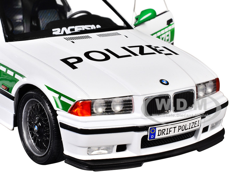 - Brand new 1/18 scale diecast car model of 1991 BMW E36 M3 Custom "Drift Polizei" White with Green Stripes die cast model car by Solido.