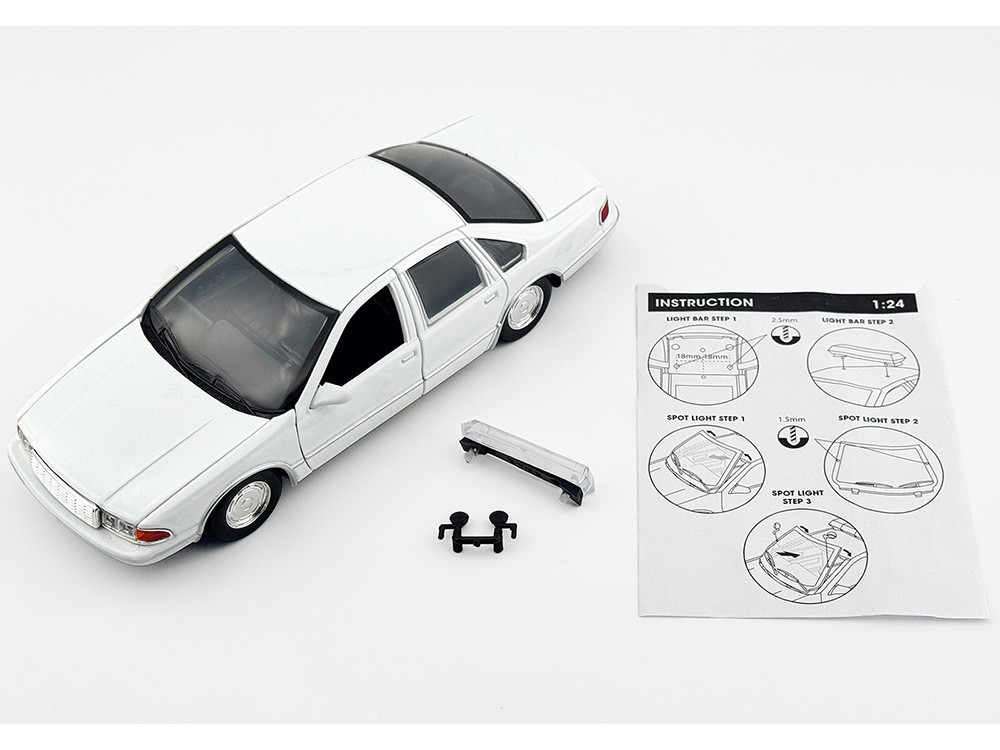 - Brand new 1/24 scale diecast car model of 1993 Chevrolet Caprice Police Car Unmarked White "Custom Builder's Kit" Series die cast model car by Motormax.