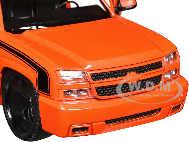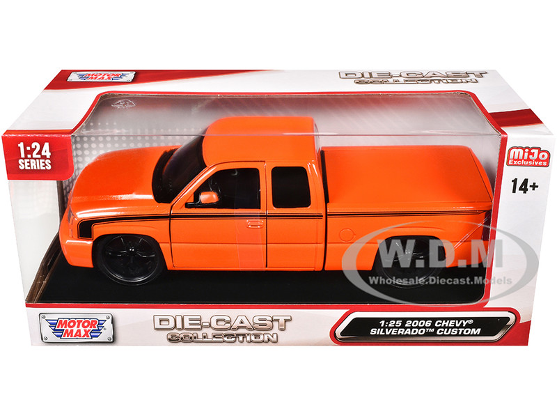- Brand new 1/25 scale diecast model car of 2006 Chevrolet Silverado Custom Pickup Truck Orange Metallic with Black Stripes "Die-Cast Collection" Series die cast car model by Motormax.