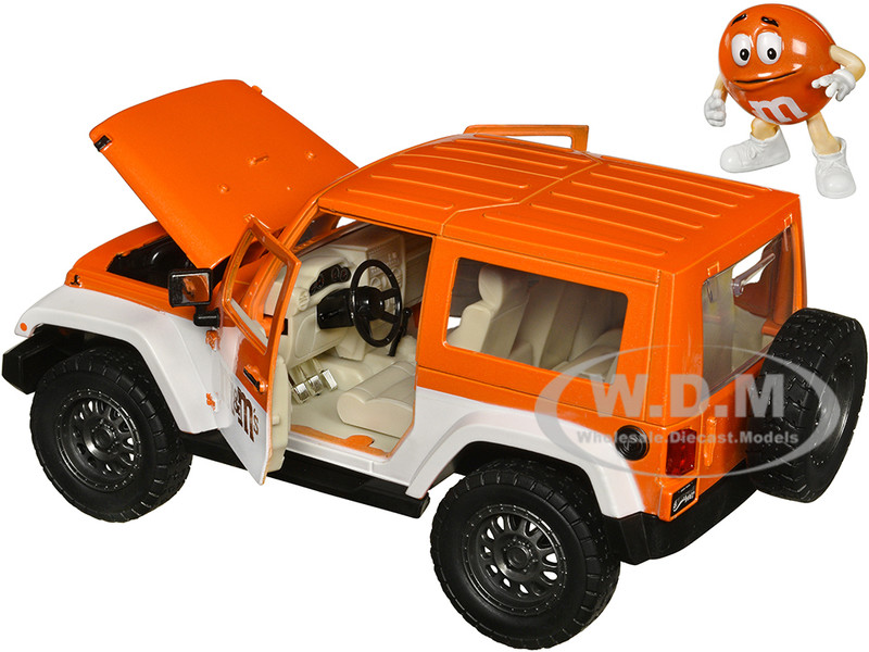 - Brand new 1/24 scale diecast car model of 2007 Jeep Wrangler Orange Metallic and White and Orange M&M Diecast Figure "M&M's" "Hollywood Rides" Series die cast model car by Jada.