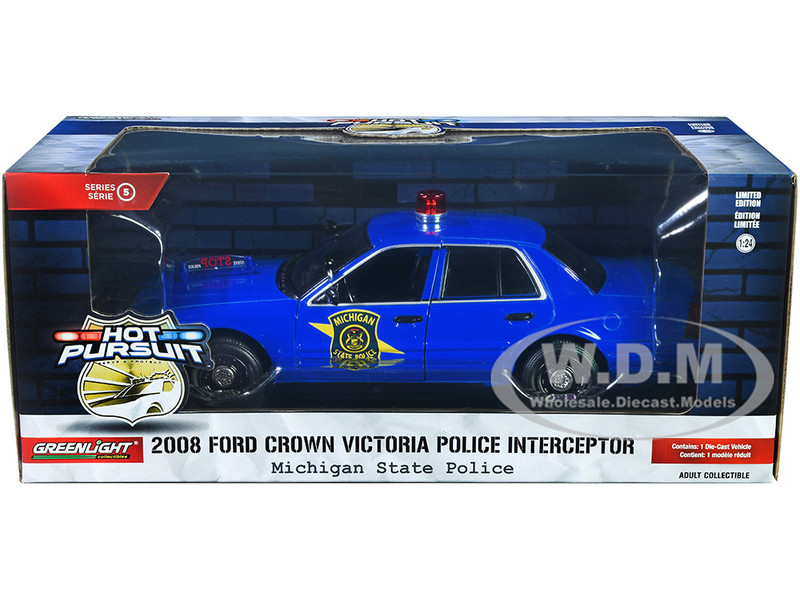 - Brand new 1/24 scale diecast car model of 2008 Ford Crown Victoria Police Interceptor Dark Blue "Michigan State Police" "Hot Pursuit" Series die cast model car by Greenlight.