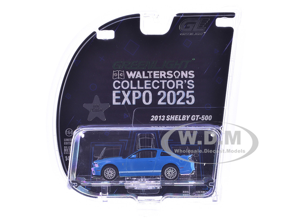 - Brand new 1/64 scale diecast car model of 2013 Shelby GT-500 Blue with White Stripes "2025 Greenlight Waltersons Collector's Expo Exclusive" die cast model car by Greenlight.