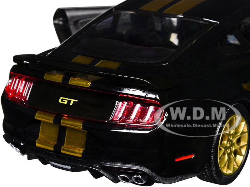 - Brand new 1/24 scale diecast car model of 2018 Ford Mustang GT 5.0 Black with Gold Stripes and Graphics "Midnight Eclipse" Series die cast model car by Motormax.