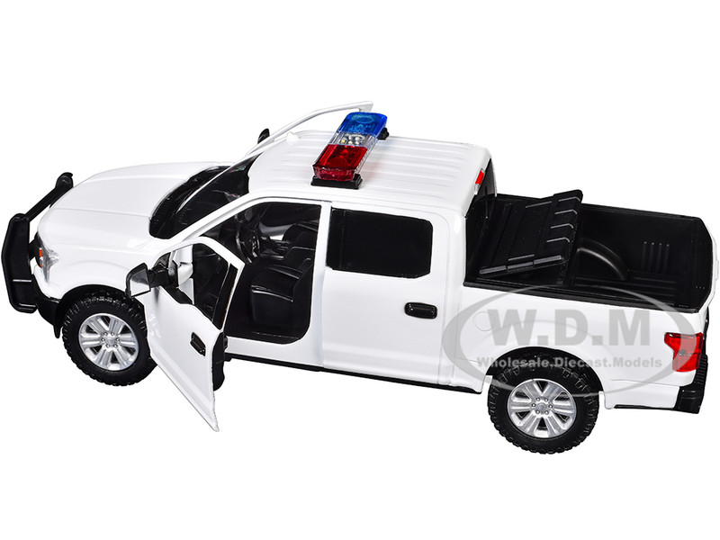 - 2019 Ford F-150 Lariat Crew Cab Pickup Truck White with Flashing Light Bar and Front and Rear Lights and Sounds 1/27 Diecast Model Car by Motormax
