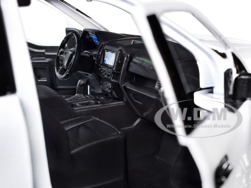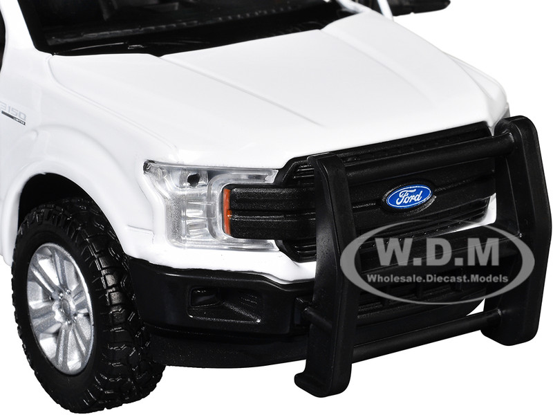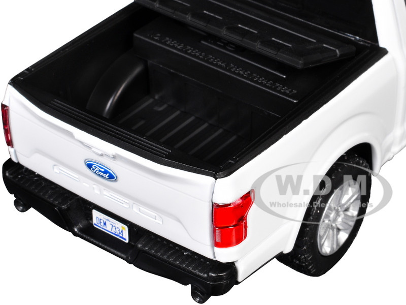 - Brand new 1/27 scale diecast car model of 2019 Ford F-150 Lariat Crew Cab Pickup Truck White with Flashing Light Bar and Front and Rear Lights and Sounds die cast model car by Motormax.