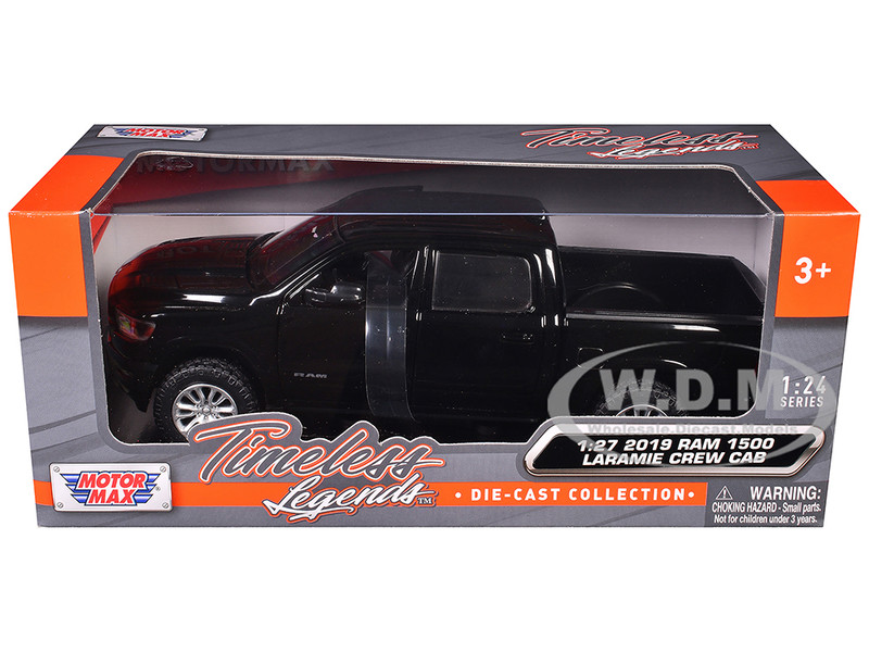 - Brand new 1/24 scale diecast car model of 2019 RAM 1500 Laramie Crew Cab Pickup Truck Black die cast model car by Motormax.