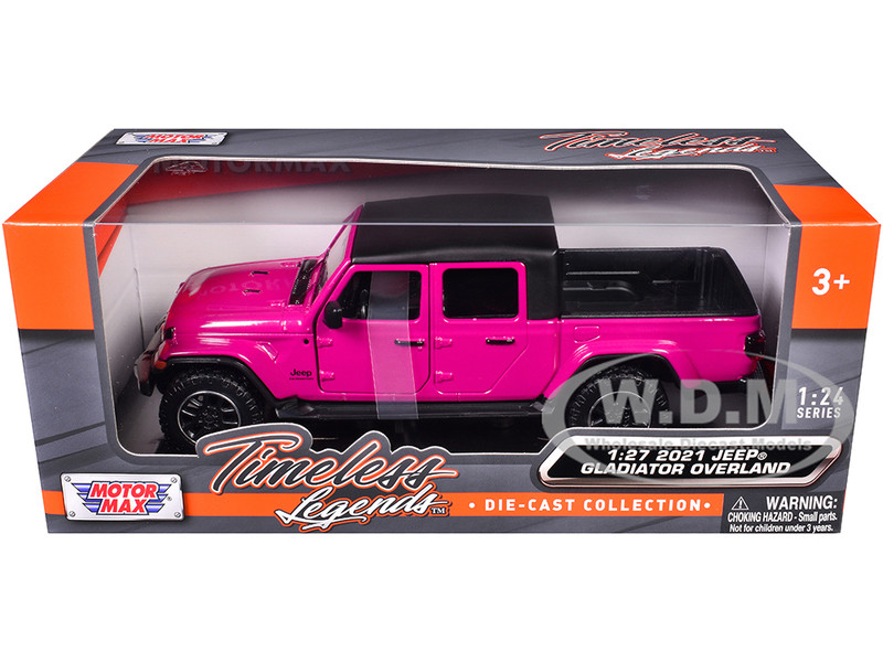 - Brand new 1/27 scale diecast car model of 2021 Jeep Gladiator Overland Pickup Truck Purple with Matt Black Top die cast model car by Motormax.