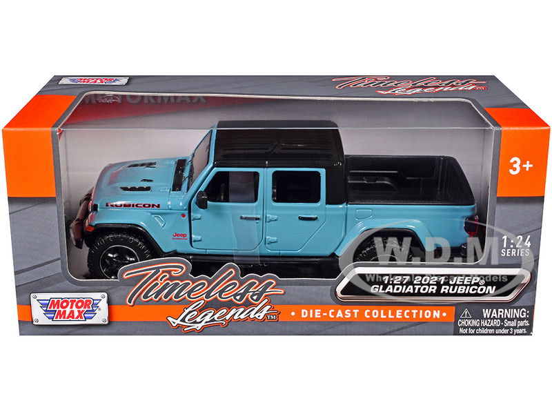 - Brand new 1/27 scale diecast car model of 2021 Jeep Gladiator Rubicon (Closed Top) Pickup Truck Blue with Black Top die cast model car by Motormax.