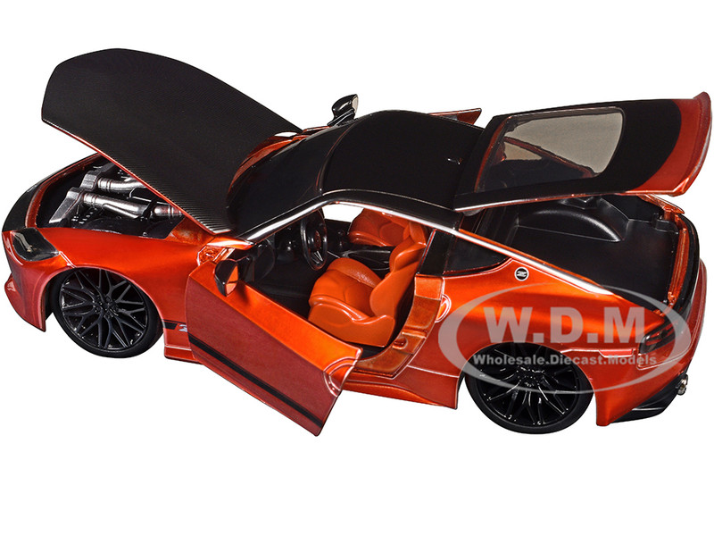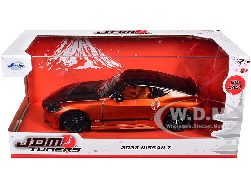 - Brand new 1/24 scale diecast car model of 2023 Nissan Z Orange Metallic with Carbon Hood and Black Top "JDM Tuners" Series die cast model car by Jada.