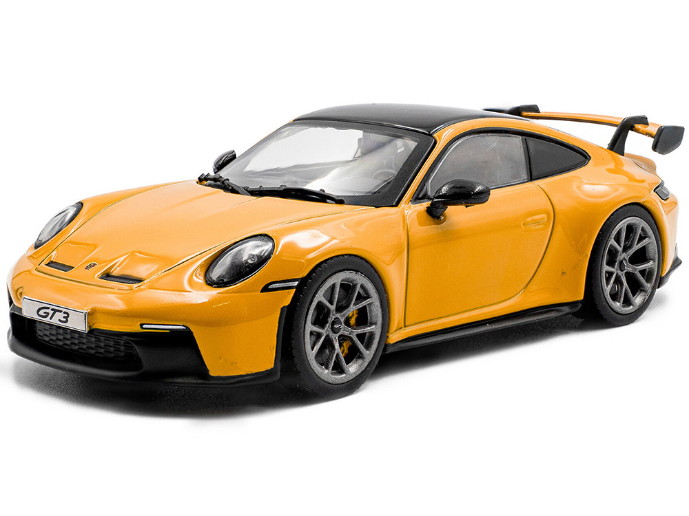 - Brand new 1/43 scale diecast car model of 2023 Porsche 911 (992) GT3 Signal Yellow with Black Top die cast model car by Solido.