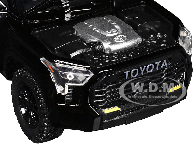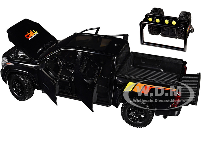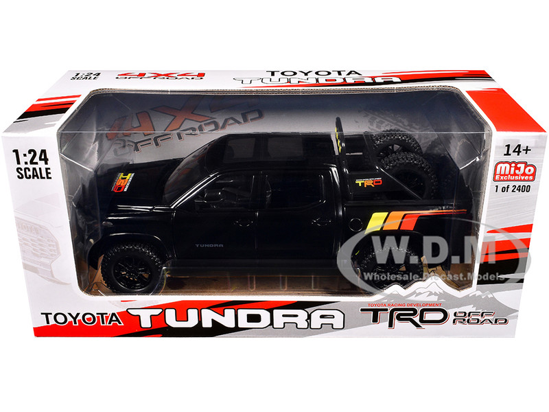 - Brand new 1/24 scale diecast car model of 2023 Toyota Tundra TRD 4x4 Pickup Truck Black with TRD Stripes with Sunroof and Wheel Rack Limited Edition to 2400 pieces Worldwide die cast model car.