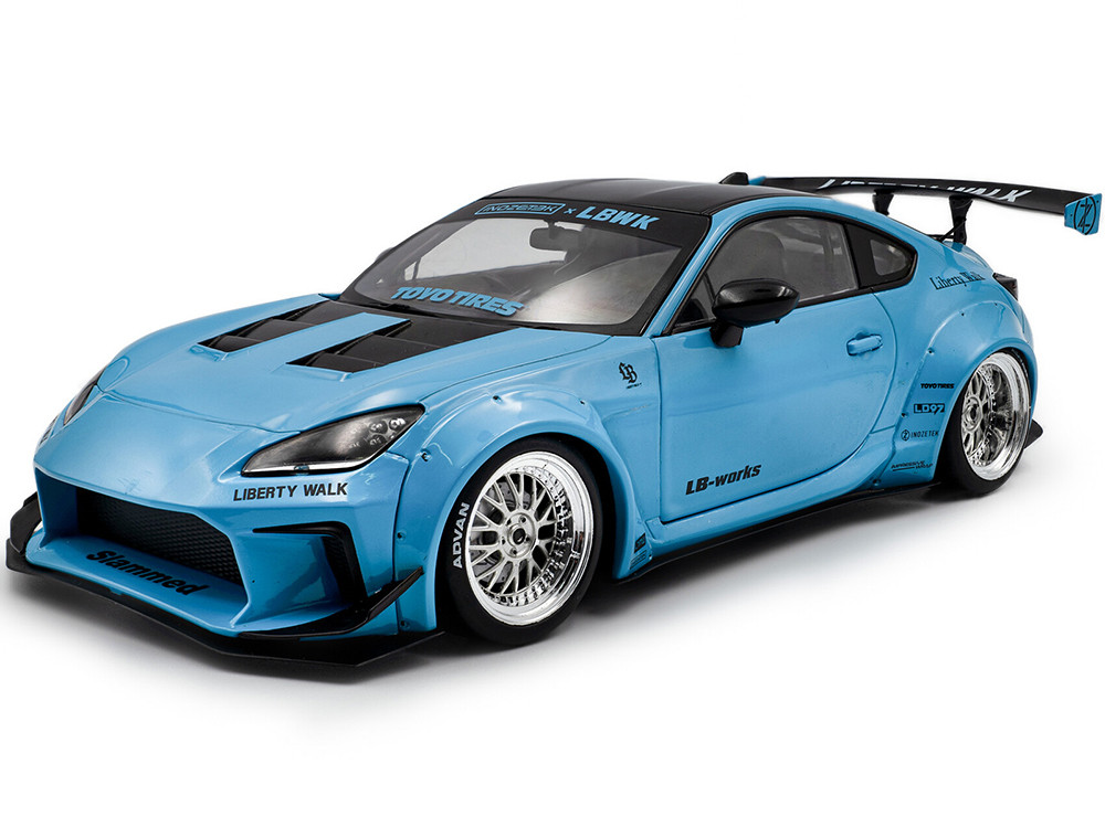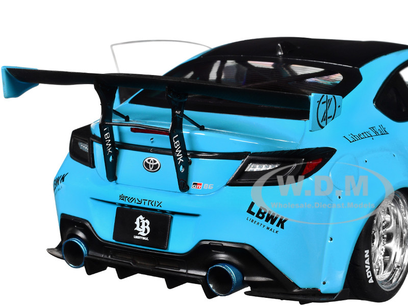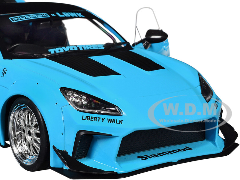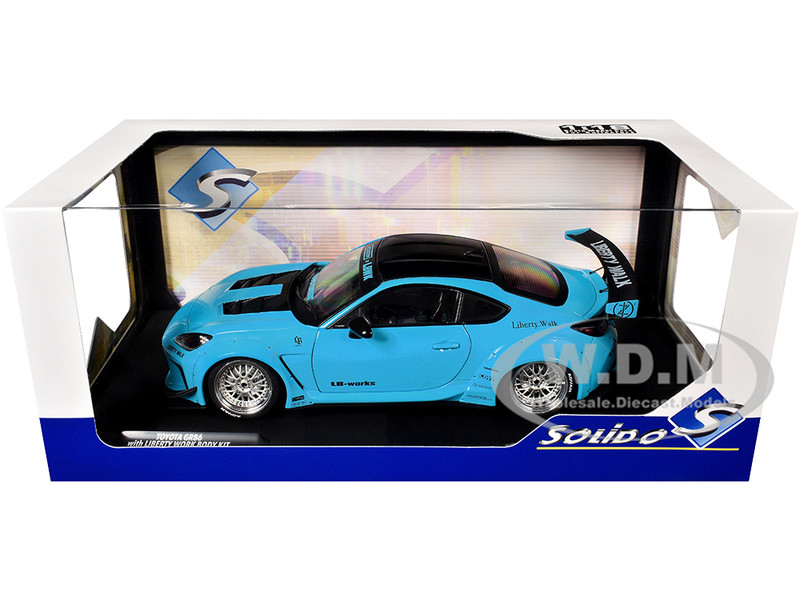 - Brand new 1/18 scale diecast car model 2024 Toyota GR86 LBWK Body Kit RHD (Right Hand Drive) Baby Blue with Black Top die cast model car by Solido.