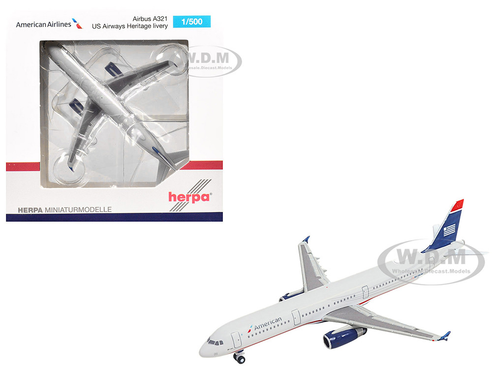 - Brand new 1/500 scale diecast airplane model of Airbus A321 Commercial Aircraft "American Airlines" (N578UW) Gray with Blue Tail die cast model by Herpa.