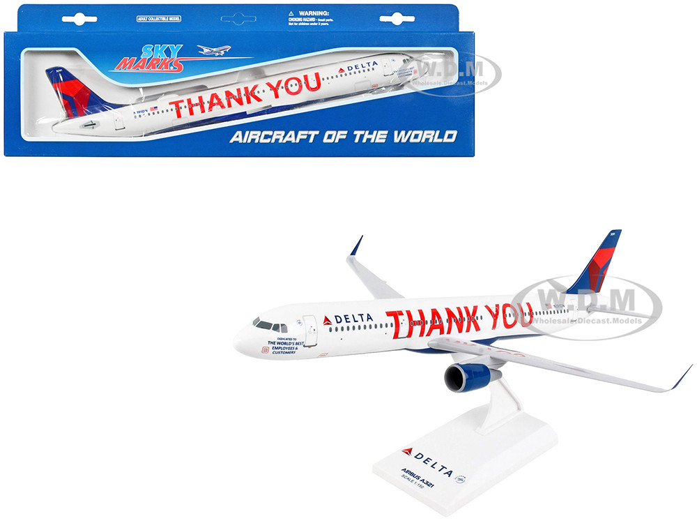 - Brand new plastic snap-fit model Airbus A321 Commercial Aircraft "Delta Air Lines - Thank You" (N391DN) White with Red and Blue Tail (Snap-Fit) 1/150 plastic model by Skymarks.