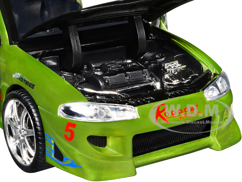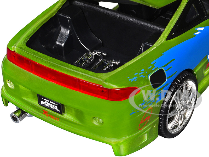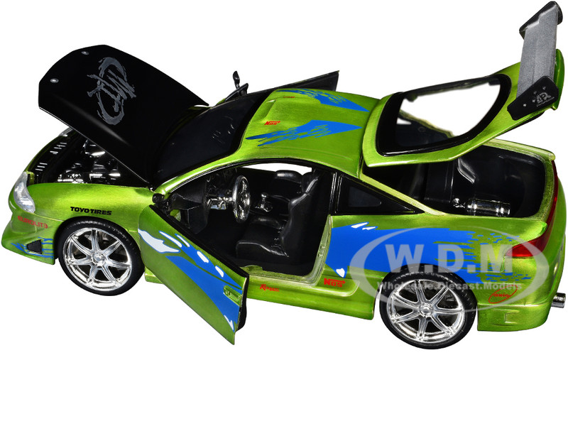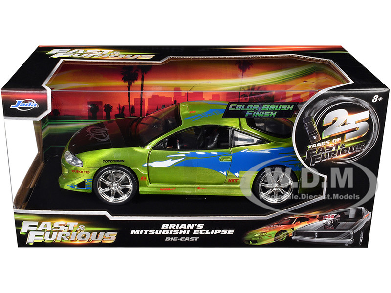 - Brand new 1/24 scale diecast car model of Brian's Mitsubishi Eclipse Green Color Brush Finish with Graphics "The Fast and the Furious" (2001) Movie "Fast & Furious" Series die cast model car by Jada.