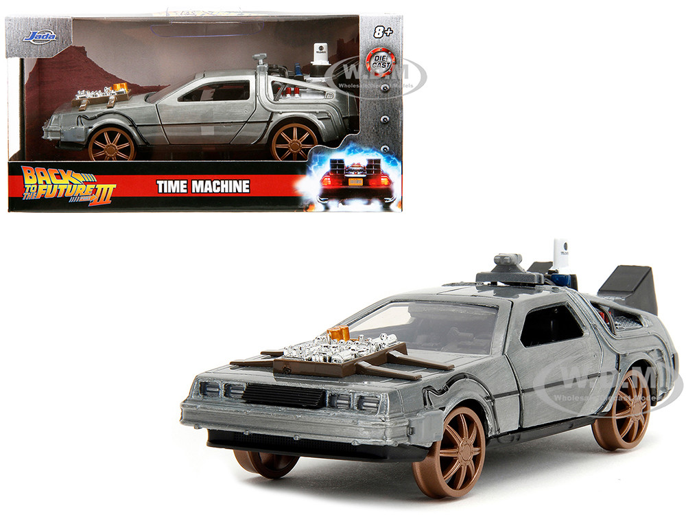 - Brand new 1/32 scale diecast car model of DeLorean DMC (Time Machine) Brushed Metal Train Wheel Version "Back to the Future Part III" (1990) Movie "Hollywood Rides" Series die cast model car by Jada.