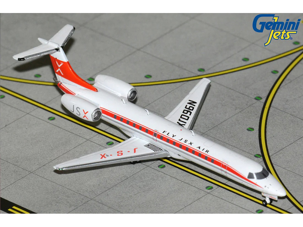 - Brand new 1/400 scale diecast airplane model of Embraer ERJ-145 Commercial Aircraft "JSX" (N960JX) White with Red Stripes and Tail die cast model by GeminiJets.