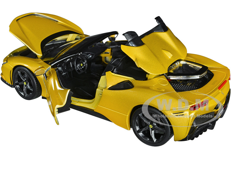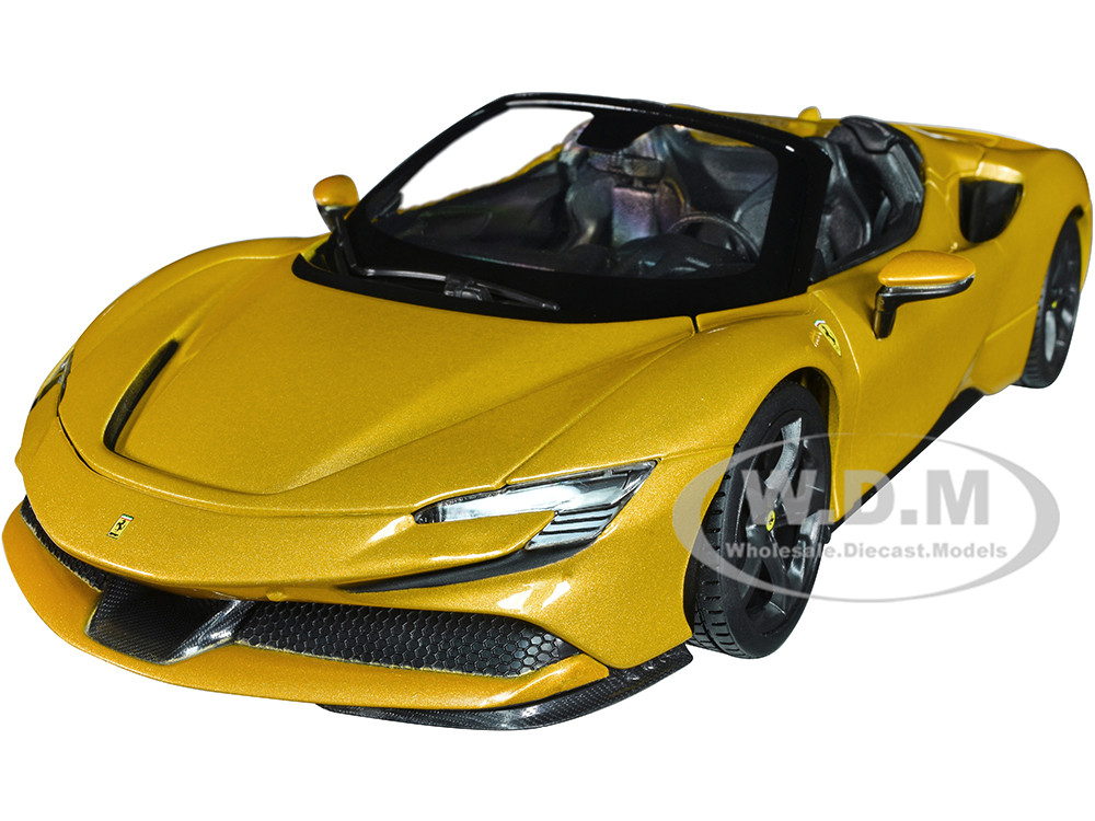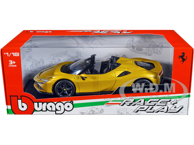 - Ferrari SF90 Spider Gold Metallic "Race + Play" Series 1/18 Diecast Model Car by Bburago