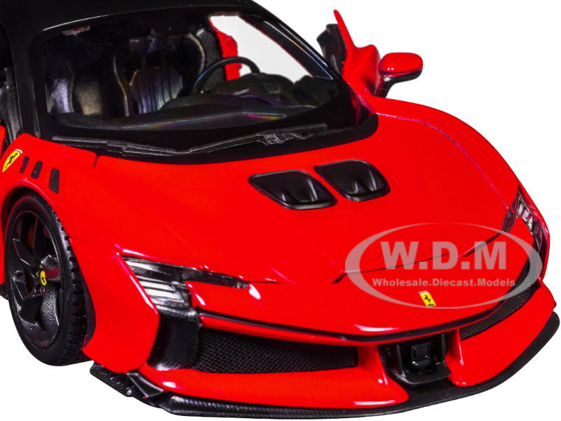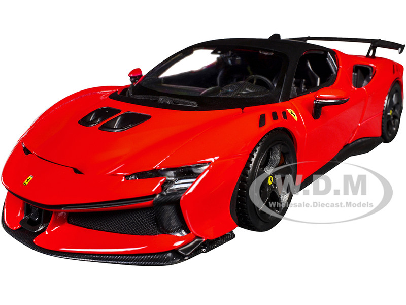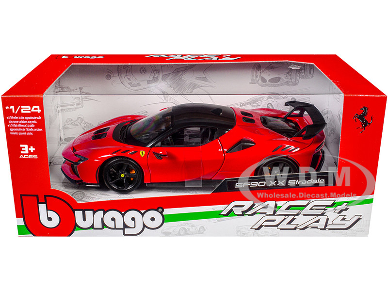 - Brand new 1/24 scale diecast car model of Ferrari SF90 XX Stradale Red with Black Top "Race and Play" Series die cast model car by Bburago.