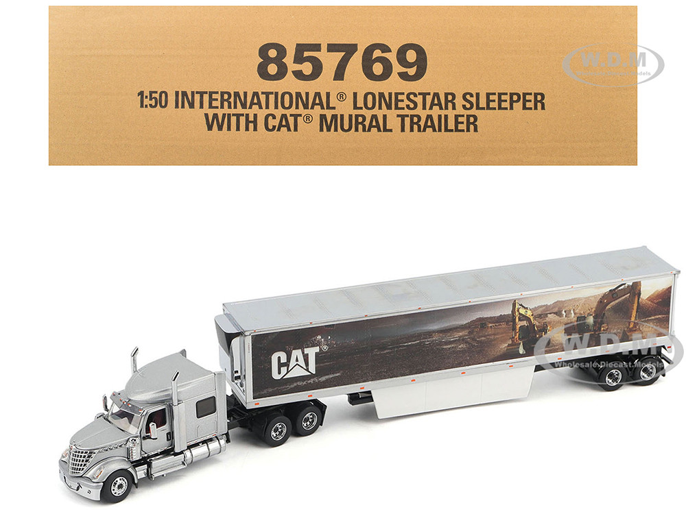 - Brand new 1/50 scale diecast model of International Lonestar Truck with Sleeper Silver Metallic with "CAT Caterpillar" Mural Trailer "Transport Series" die cast model by Diecast Masters.