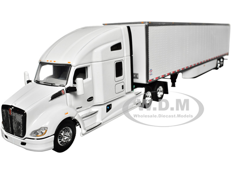 - Kenworth T680 with 76" High Roof Sleeper and 53' Smooth Sided Dry Goods Trailer White 1/64 Diecast Model by DCP/First Gear