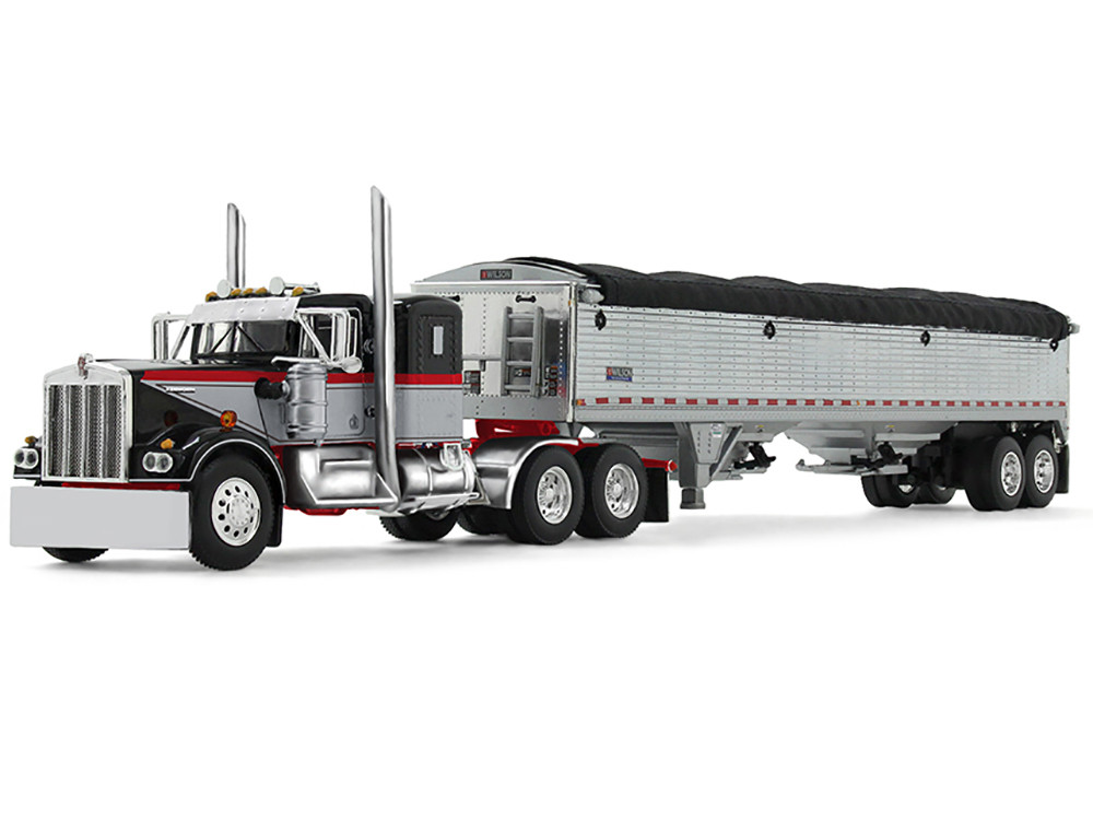 Kenworth W900A with 36" Sleeper and 43' Wilson Pacesetter Grain Trailer Black and Gray with Viper Red Stripes 1/64 Diecast Model by DCP/First Gear