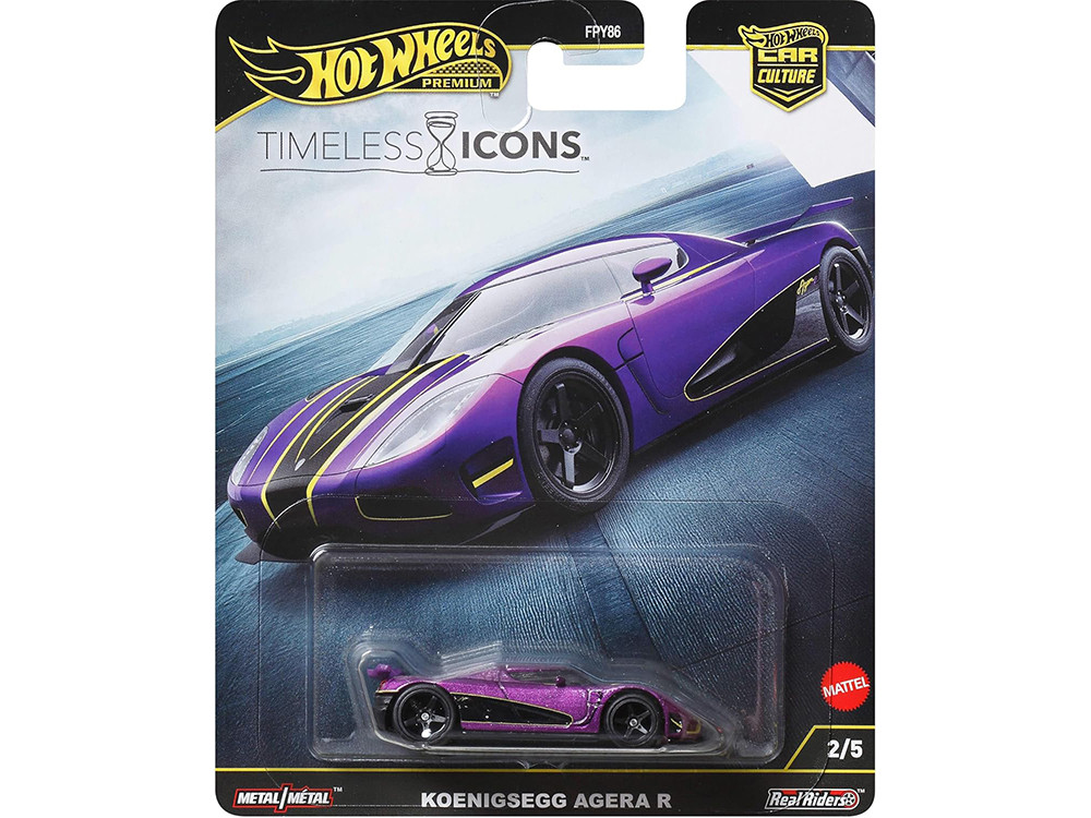 - Brand new diecast car model of Koenigsegg Agera R Purple Metallic with Black and Yellow Stripes "Timeless Icons" Series die cast model car by Hot Wheels.