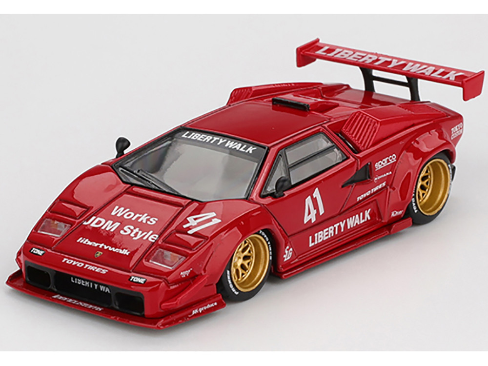 - Brand new 1/64 scale diecast car model of Lamborghini Countach LB-WORKS #41 Red Limited Edition die cast model car by Mini GT.