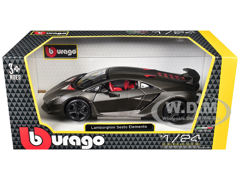 - Brand new 1:24 scale diecast model car of Lamborghini Sesto Elemento Matt Grey die cast car model by Bburago.