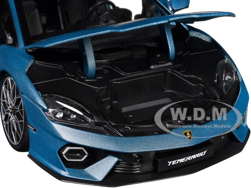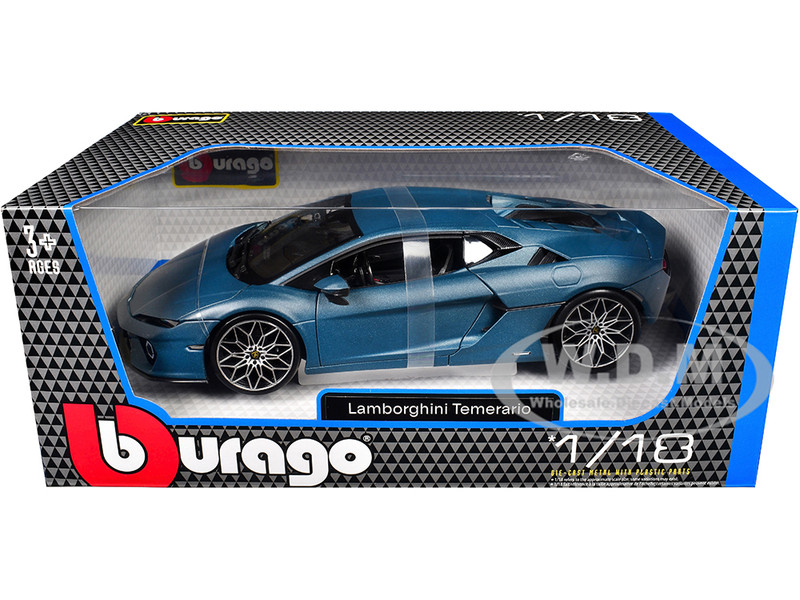 - Brand new 1/18 scale diecast car model of Lamborghini Temerario Matt Blue Metallic die cast model car by Bburago.